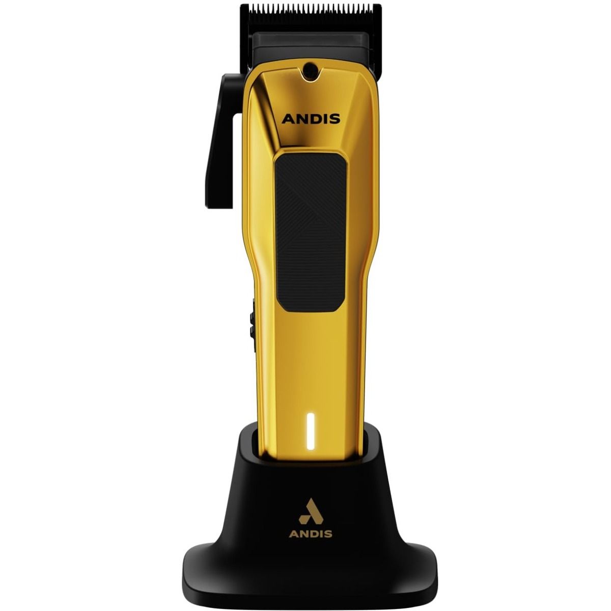 Clipper comes equipped with gold cover and black textured grip, secondary black cover and white textured grip, 5 dual-magnetic attachment combs (#0 - 1/16", 1# - 1/8", #2 - 1/4", #3 - 3/8", #4 - 1/2"), blade cleaning brush, premium charging stand , USB-C charging adapter, blade oil and blade guard.
