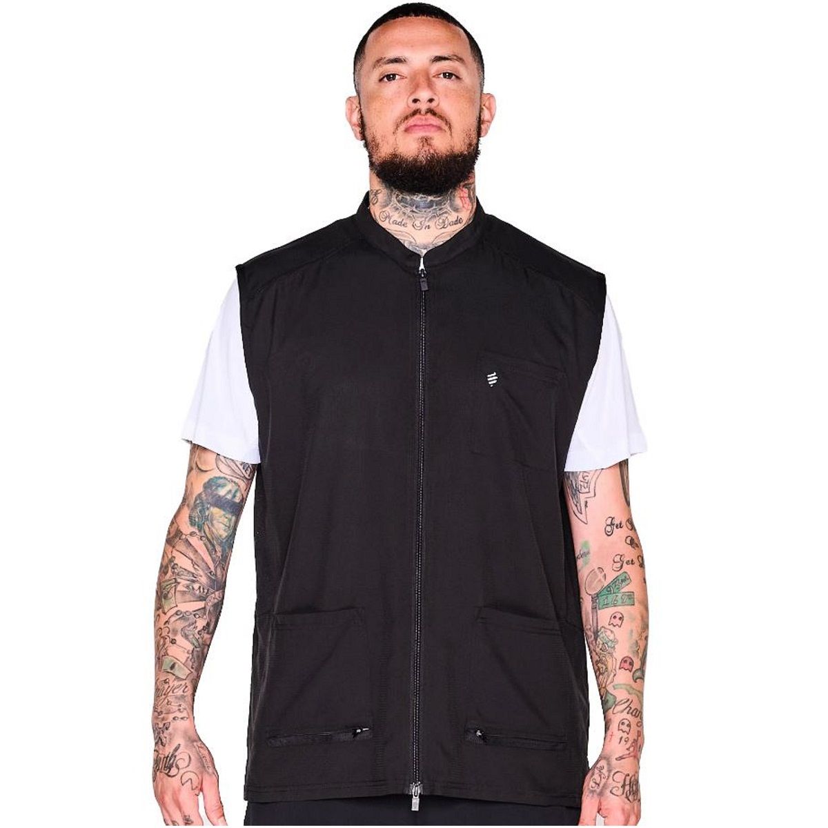 The Barber Vest features lightweight material, vented side panels and a 2-way zipper for max comfort. Sleeveless vest offers increased airflow where you need it the most, and hair removal system in the front pockets allows for easy cleaning.