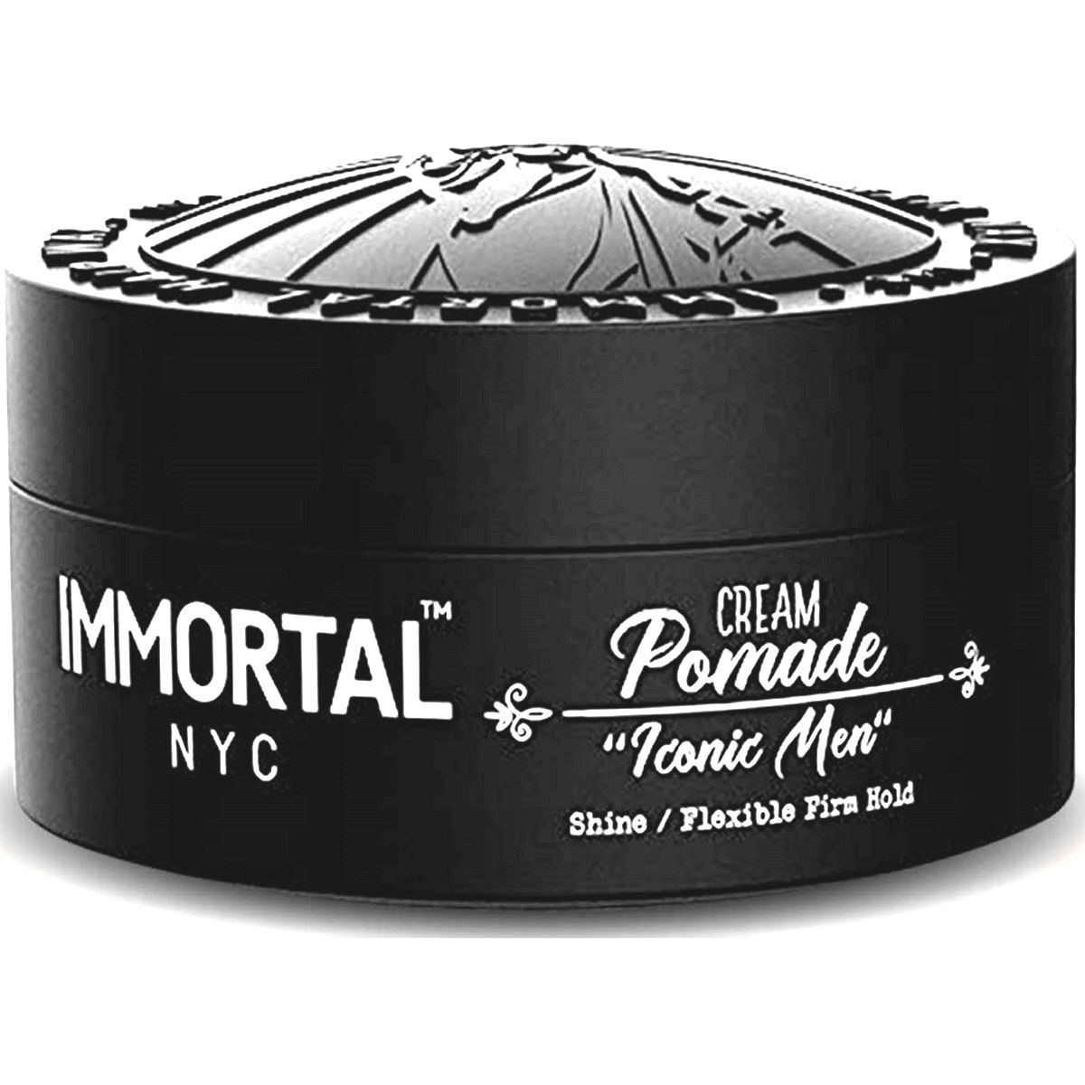 Immortal NYC Cream Pomade -"Iconic Man" delivers perfect holding power and natural brightness. This formula has ingredients that help repel moisture, so your hair style keeps looking great, through a workout or on the beach.